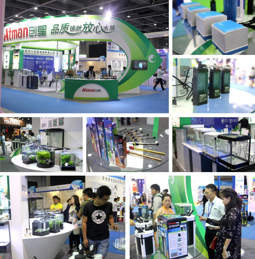 我們把本次參展看作是2015年產(chǎn)品研發(fā)的閱兵場(chǎng),展會(huì)上秀出了以“微水族”為概念的新一代配套式魚(yú)缸,新研發(fā)的節(jié)能水泵,氣泵(氣立方),新型加熱棒(猛將,金剛),新升級(jí)的AT缸外生化過(guò)濾桶系列等等。